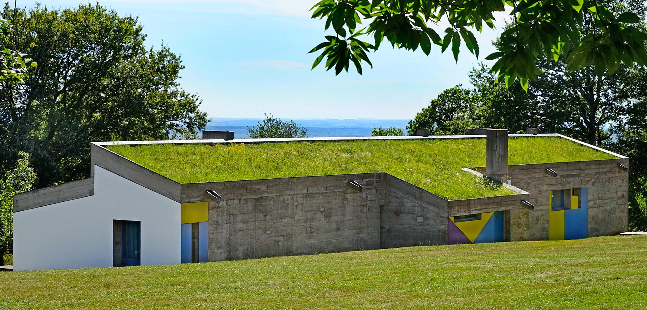 Toit végétalisé de l'abri du pèlerin de Notre-Dame du Haut à Ronchamp