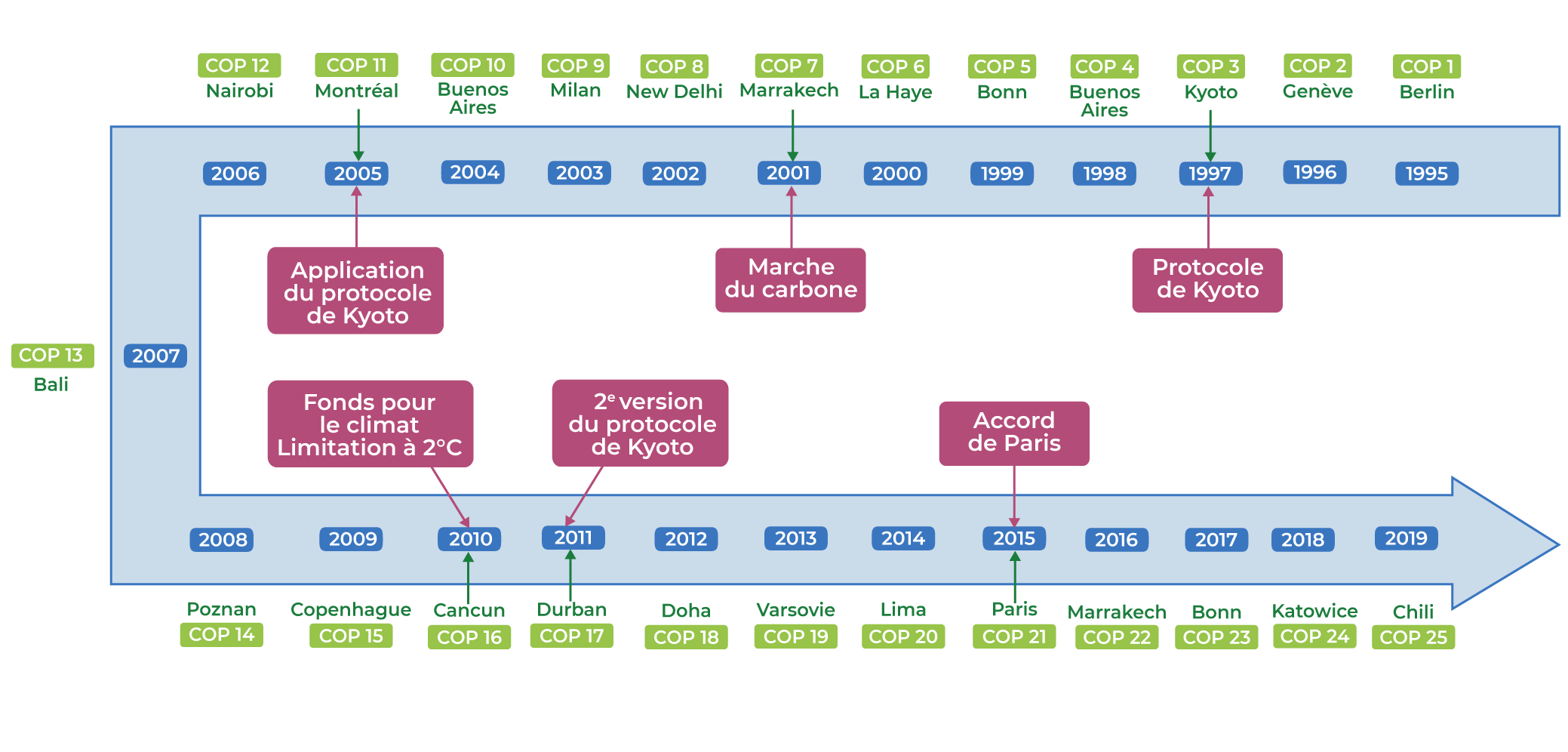 Les COP depuis 1995 et les principales actions en découlant