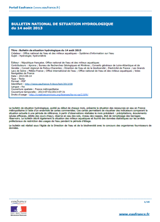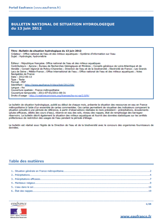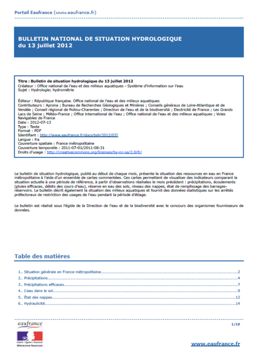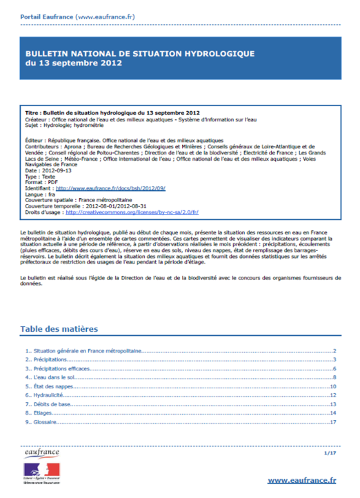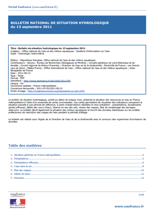 Bulletin de situation hydrologique de octobre 2013