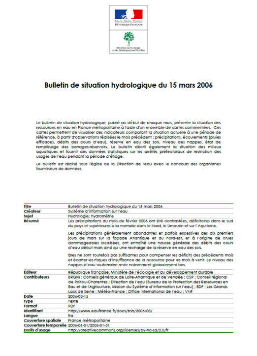 Bulletin de situation hydrologique de mars 2006