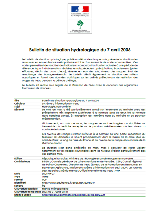 Il décrit la situation quantitative des milieux aquatiques (pluies efficaces, débits des cours d’eau, niveau des nappes d’eau souterraine, état de remplissage des barrages-réservoirs) et fournit une information synthétique sur les arrêtés préfectoraux pris pour limiter les usages de l’eau durant la période d’étiage.