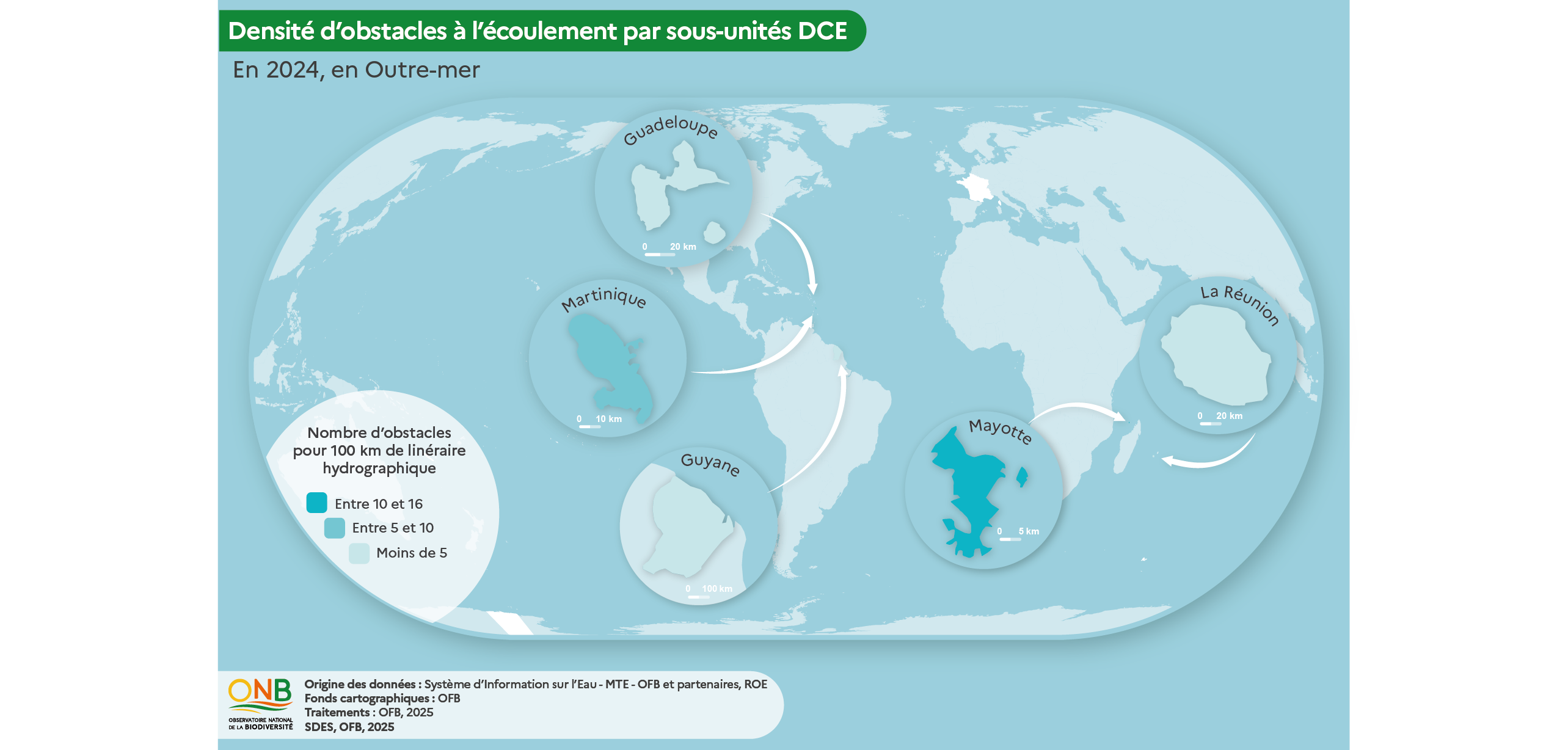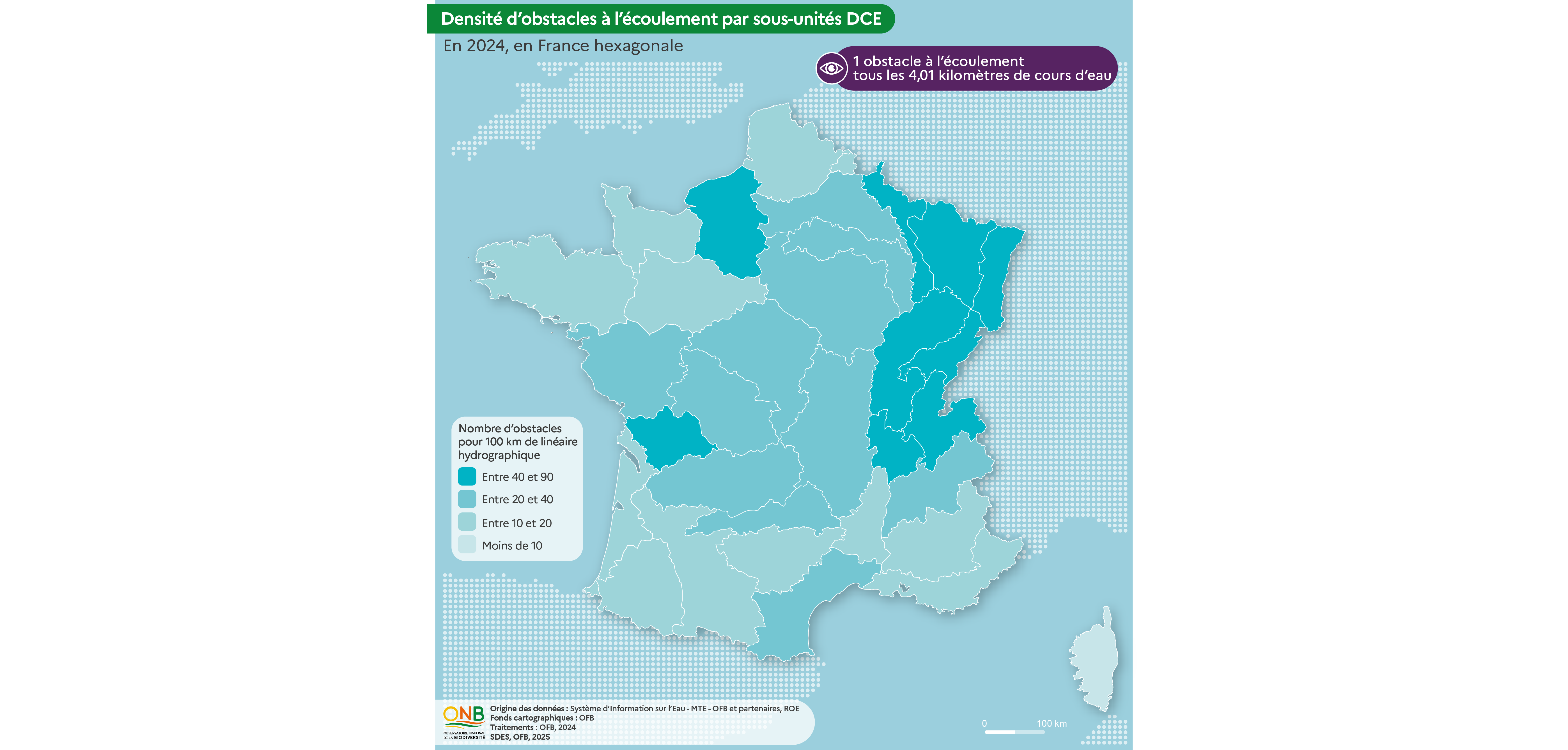 Retrouvez ci-dessous les cartes produites dans le cadre de la production de l'indicateur ONB Fragmentation des cours d'eau (naturefrance)