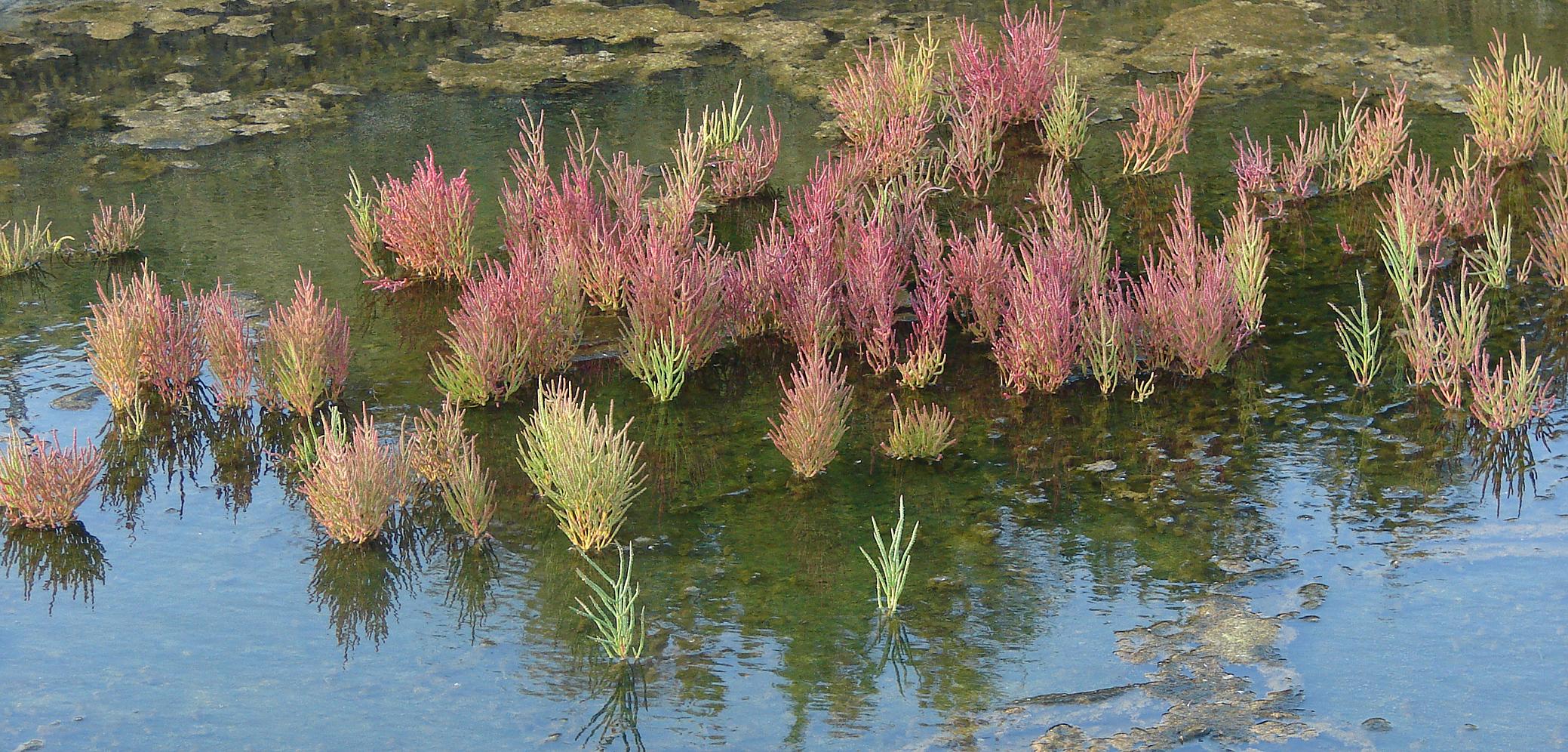 Dans les lagunes et les deltas, ces espaces ne sont jamais recouverts par la marée, mais peuvent être inondés par l’eau douce lors des crues. On les nomme alors sansouïres, et la salinité du milieu provient alors de la nappe souterraine, salée sur le littoral suite à l’infiltration d’eau de mer (en savoir plus sur les nappes souterraines).