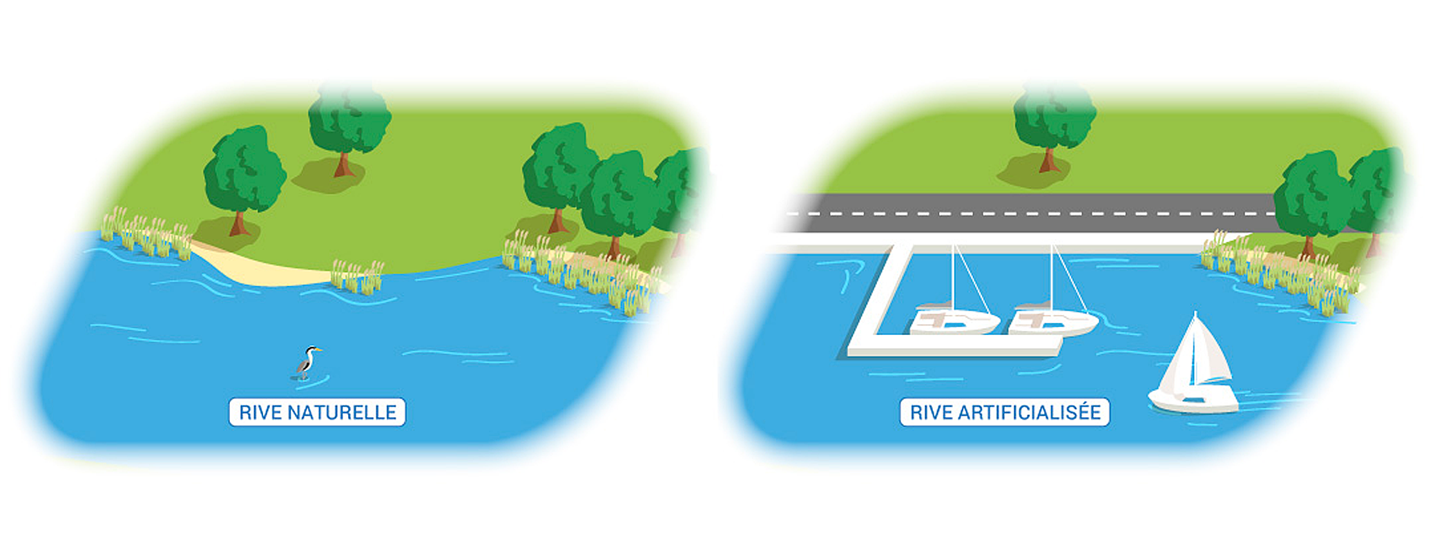 L’aménagement d’un milieu aquatique est parfois réalisé pour permettre ou améliorer un usage de l’eau ou du milieu : par exemple, la construction d’un port sur les rives d’un lac pour permettre la navigation. Cette intervention modifie l’hydromorphologie du milieu (dans l’exemple cité, la structure des rives du plan d’eau). Ce peut être l’objectif même de l’aménagement - comme dans le cas de la déconnexion d’une rivière de son lit majeur par la construction d’une digue - mais c’est parfois une conséquence indirecte. Dans tous les cas, cette modification n’est pas sans impact sur le milieu (en savoir plus sur les impacts de l’artificialisation).