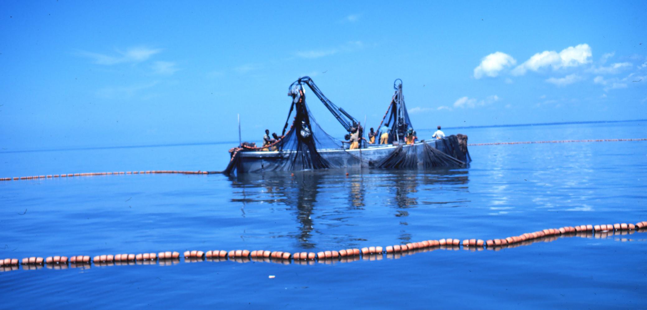 Bolincheur en pêche virant la senne, Baie de Douarnenez